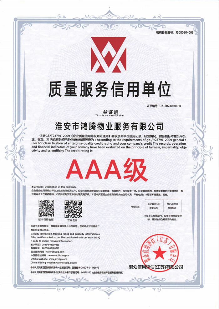歡迎光臨淮安市鴻騰物業服務有限公司官方網站,我們將竭誠為您服務......